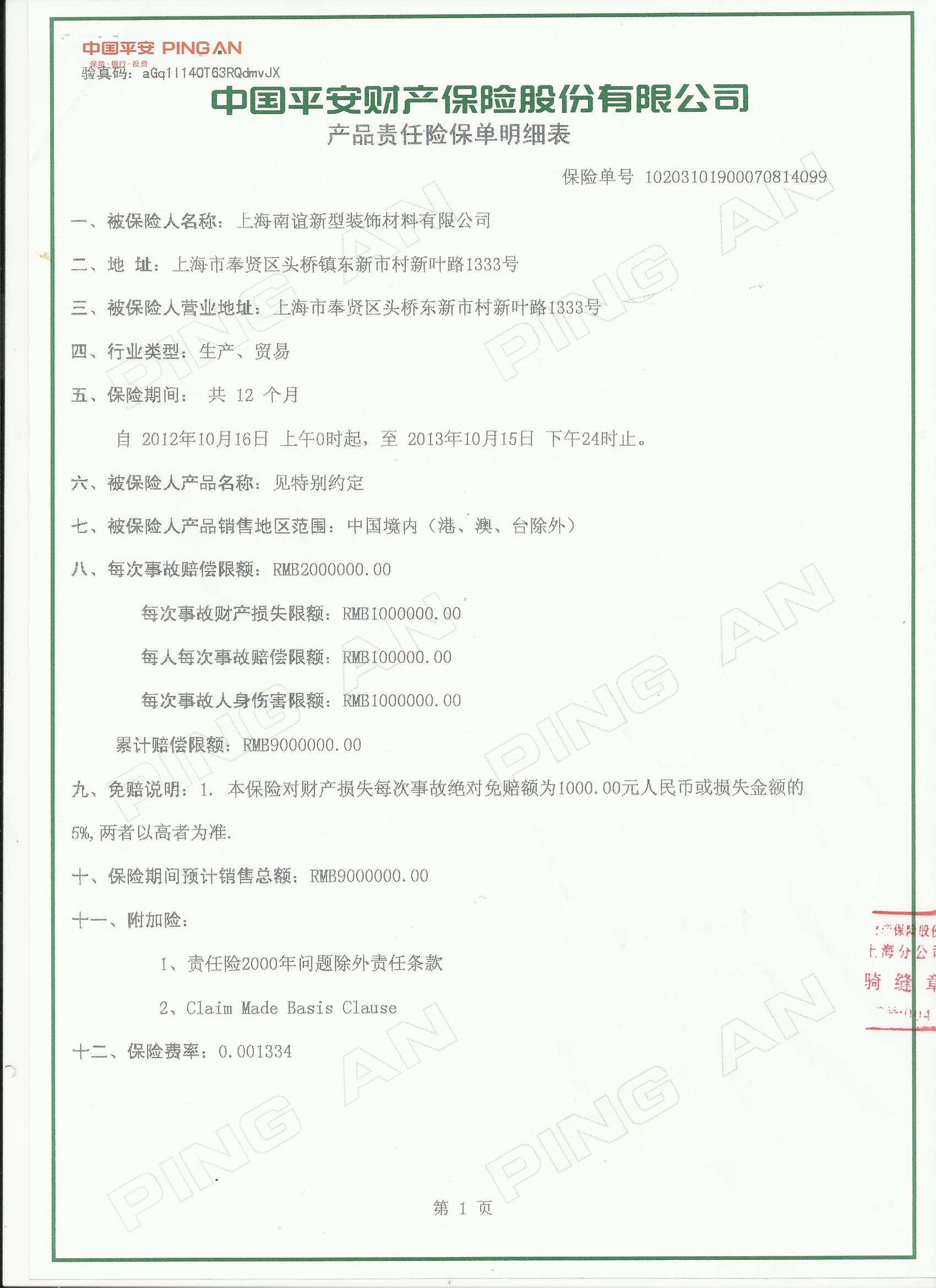 產(chǎn)品責(zé)任保險(xiǎn)單