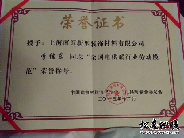 李繼東”全國電供暖行業(yè)勞動模范“榮譽稱號