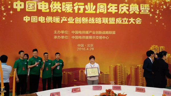 中國電供暖行業(yè)周年慶典在北京釣魚島國賓館隆重舉行,上海南誼新型裝飾材料有限公司生產(chǎn)的松熹電地暖榮獲“中國電地暖行業(yè)重點(diǎn)推薦產(chǎn)品”,本司愿與中國電供暖企業(yè)家們一起攜手并肩,杜絕霧霾,讓市民擁有藍(lán)天,擁有青山綠水而努力,霧霾有信心制作行業(yè)領(lǐng)先產(chǎn)品,讓國內(nèi)外客戶用的放心。歡迎國內(nèi)外朋友來廠考察指導(dǎo),我們將熱忱為您服務(wù)。
